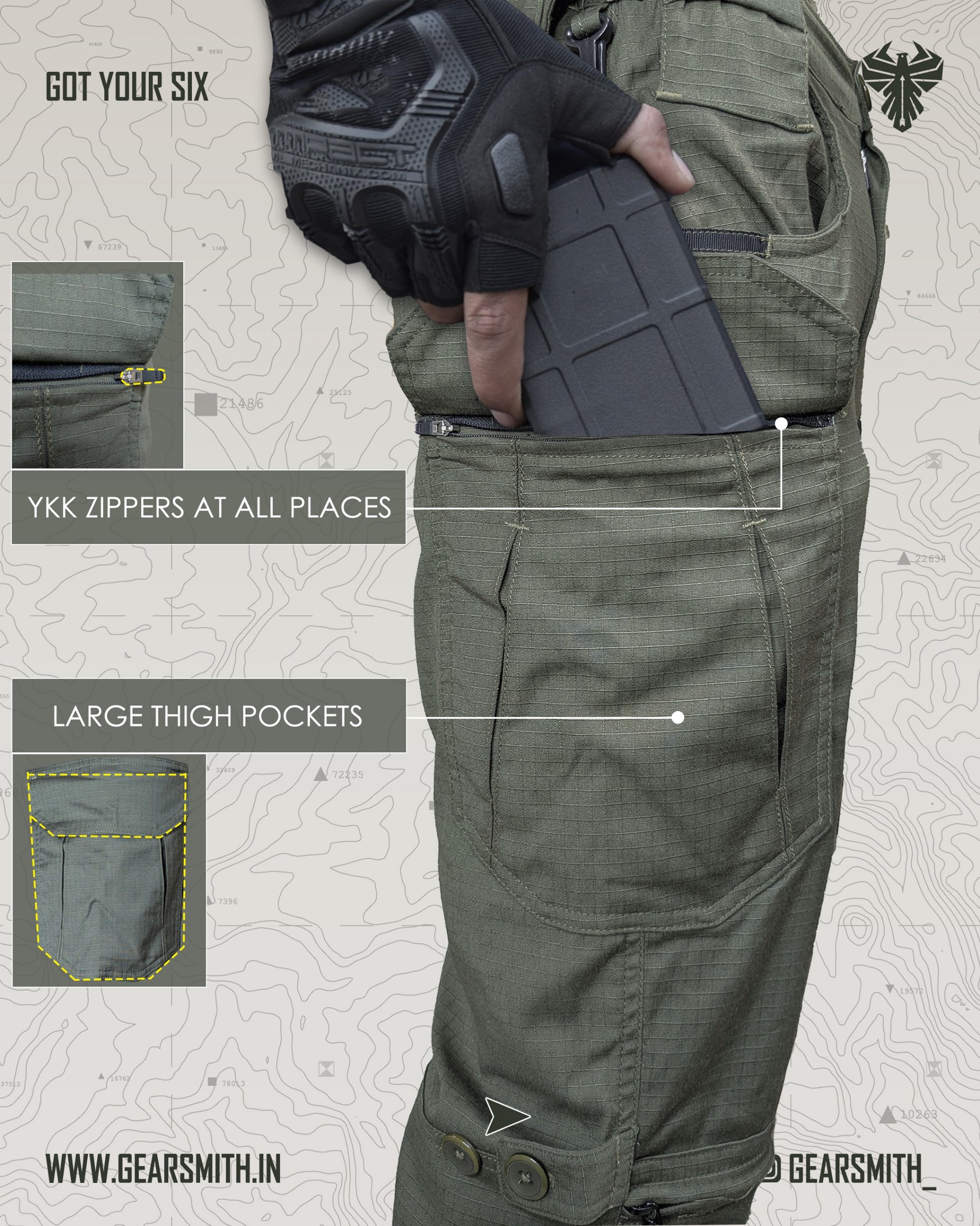 • Hybrid Material of Polyester, Cotton & Spandex With Ripstop Weave