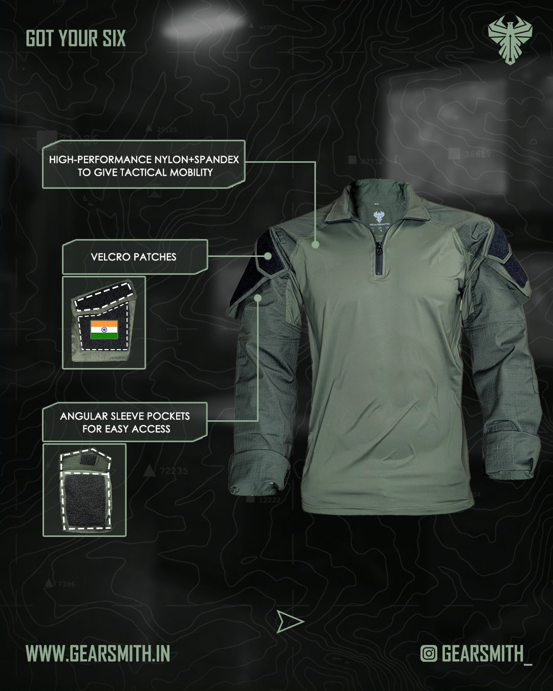 Introducing Gearsmith's Invictus MK.2 Quarter Zip Full Sleeve Shirt – a blend of durability and comfort engineered for peak performance. Made from breathable, moisture-wicking fabric, nylon, spandex and rugged ripstop material, this shirt is perfect for tactical operations and everyday wear. Featuring a sleek quarter zip design, reinforced stitching, and versatile storage pockets, it ensures optimal functionality without sacrificing style. Stay mission-ready with the Invictus MK.2, designed for warriors and adventurers who demand more from their gear.
